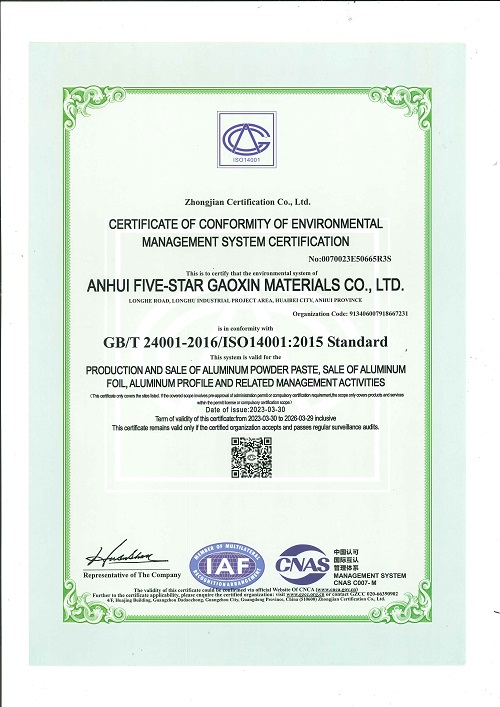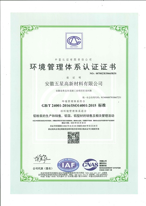 環(huán)境管理體系認(rèn)證證書(shū)(英文)