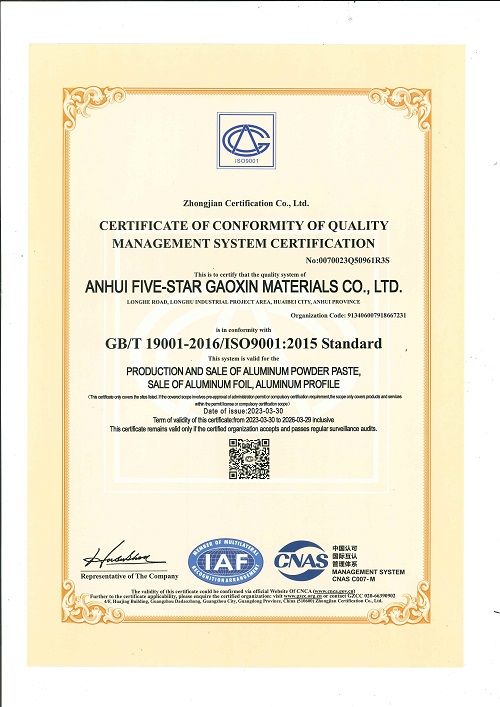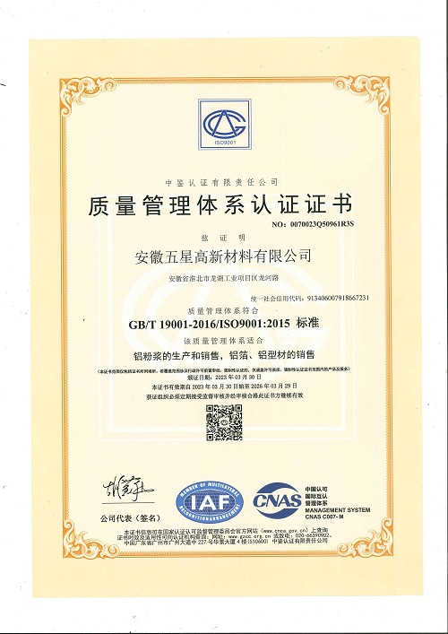 質(zhì)量管理體系認(rèn)證證書(shū)(英文)
