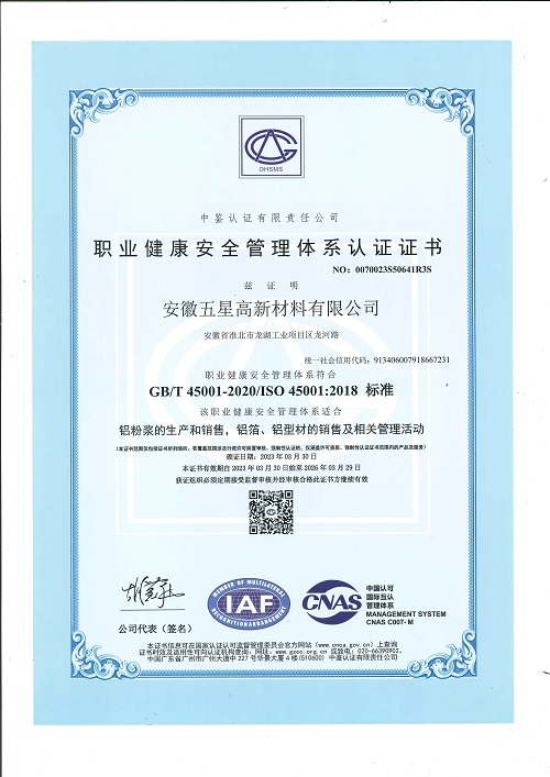 職業(yè)健康安全管理體系認(rèn)證證書(shū)