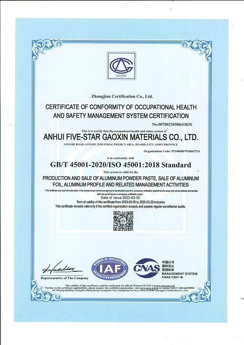 職業(yè)健康安全管理體系認證證書