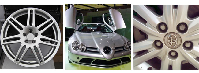 鋁銀漿主要應(yīng)用的塑膠漆在汽車工業(yè)十分常見,目前主要集中在外飾件和內(nèi)飾件。外飾件的涂裝,除了色相要與車身同色且有光澤外,還要提高表面硬度,增強(qiáng)塑料表面抗劃傷性能,更要能適應(yīng)紫外光暴曬等戶外性能。而內(nèi)飾件的涂裝則對(duì)漆膜耐候性要求不高,主要是對(duì)營造表面金屬質(zhì)感,提高內(nèi)飾件的耐刮擦、防靜電等性能有要求。